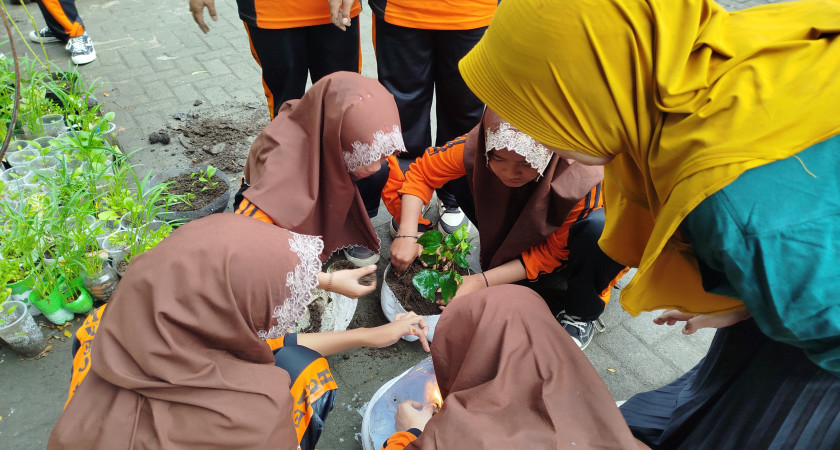 Tak hanya berhenti di situ, para siswa juga melakukan penanaman bibit tanaman seperti sayuran dan tanaman hias yang nantinya akan dirawat bersama-sama di lingkungan sekolah. Guru pendamping turut memberikan edukasi tentang pentingnya gaya hidup ramah lingkungan dan bagaimana langkah kecil seperti ini dapat memberikan dampak besar bagi bumi.